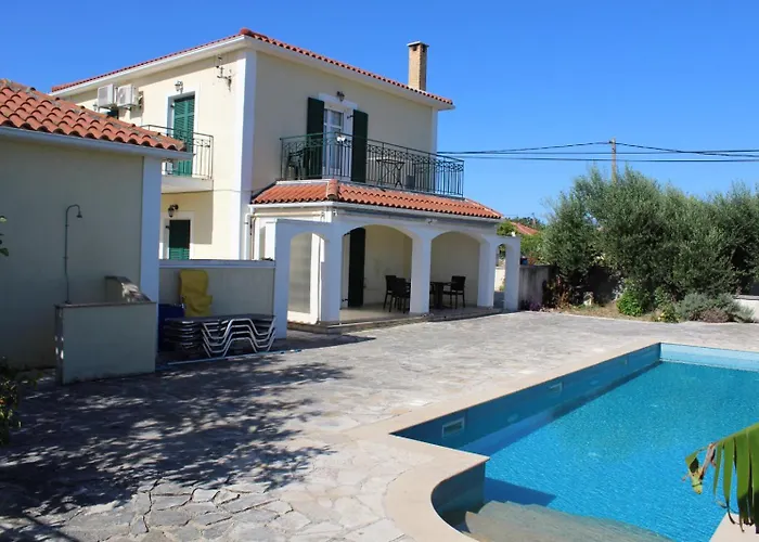 Aero Villa Lakithra Kefalonia dysponuje tarasem z widokiem na basen, 5 min jazdy od lotniska Argostoli Kefalonia.